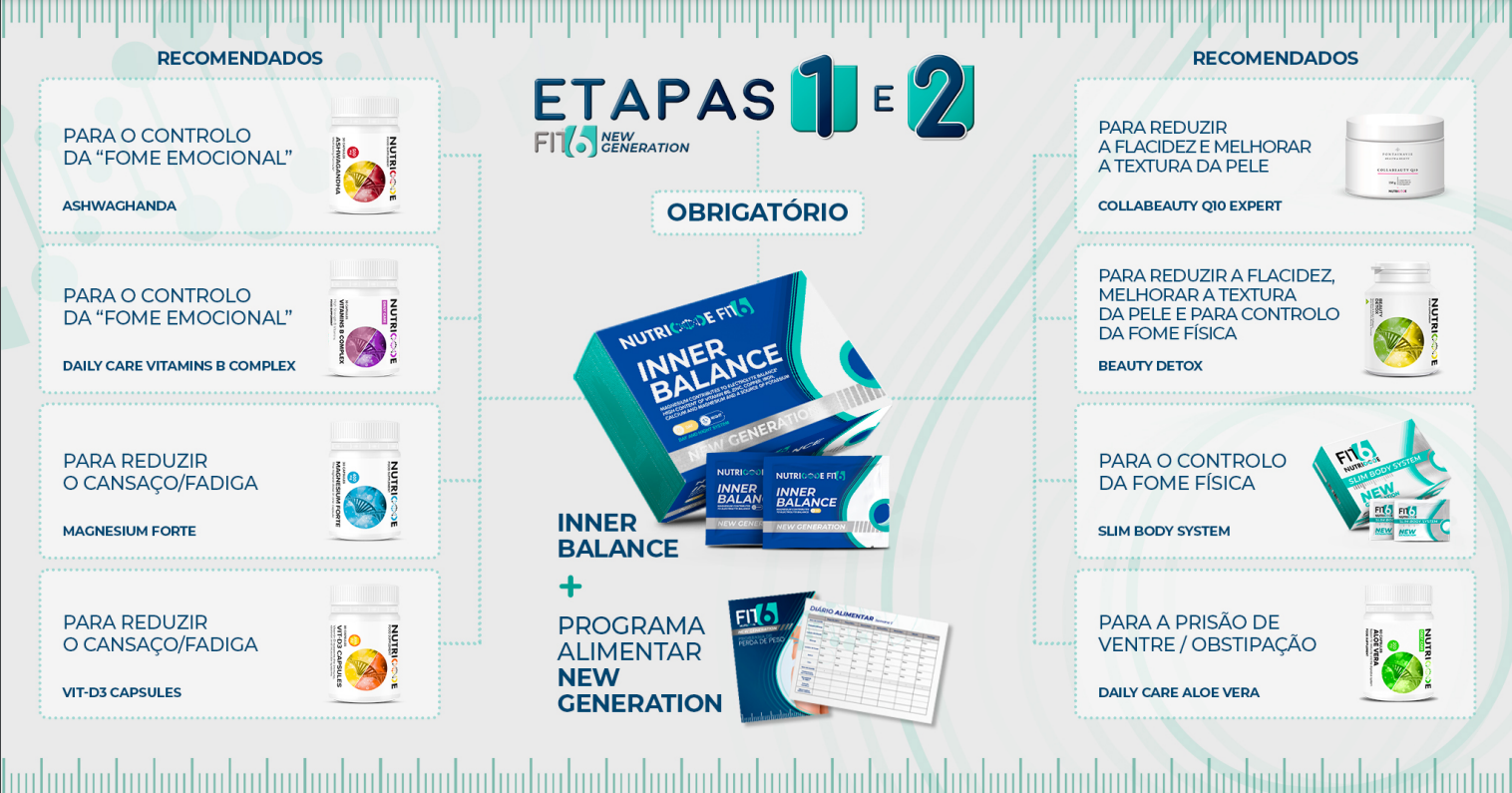 Com esta etapa vai iniciar o processo de perda de peso com um programa composto por um suplemento alimentar que vai ajudar a fazer a sua limpeza metabólica e um plano alimentar para que inicie desde já a sua reeducação alimentar.