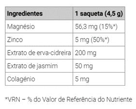 Modo de uso: Tomar 1 saqueta diluída em água à noite antes de se deitar. Não exceder a dose diária recomendada. O produto é destinado a jovens e adultos.